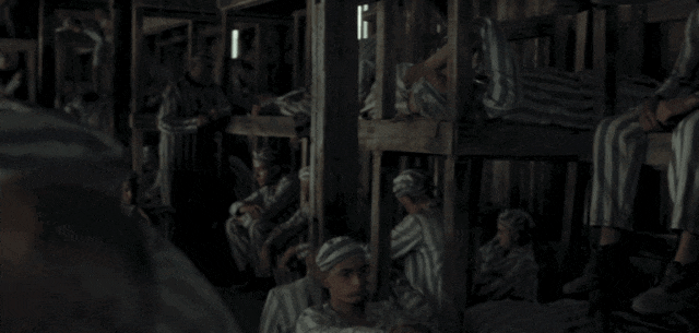 咱们看不到毒气室里面的场景,但布鲁诺和什穆尔手拉手坐在里面的画面,比任何径直展示王人更令东说念主心碎。