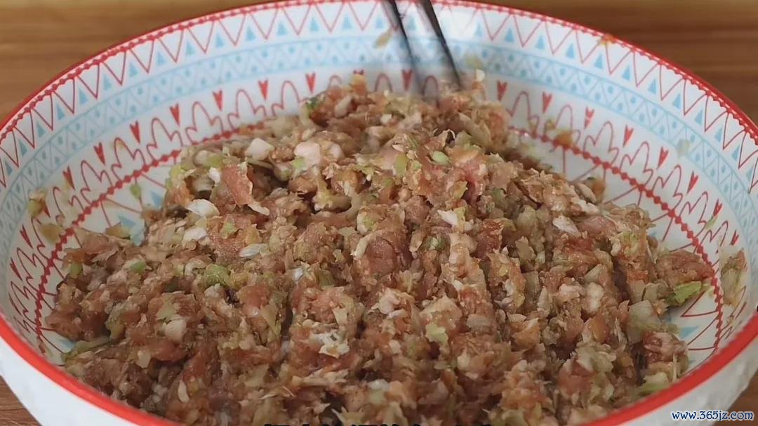 第2步,这里是300猪肉馅,三分肥七分瘦,加盐、鸡精、花椒粉、生抽、老抽、葱花,1个鸡蛋,顺着吞并个场所充分搅动均匀。也不错笔据个东谈主口味调味。