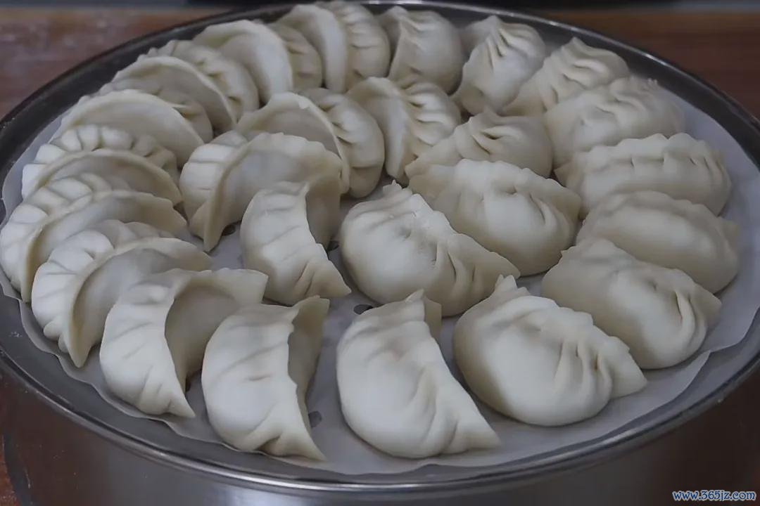 第6步,饺子包好之后,不错蒸也不错煮,齐吊唁常可口的。我今天作念的是蒸饺,把饺子放在蒸屉上。每两个之间留一丝点弱点,严防粘连。水开上锅大火蒸相配钟,时辰到不必焖,径直出锅即可。
