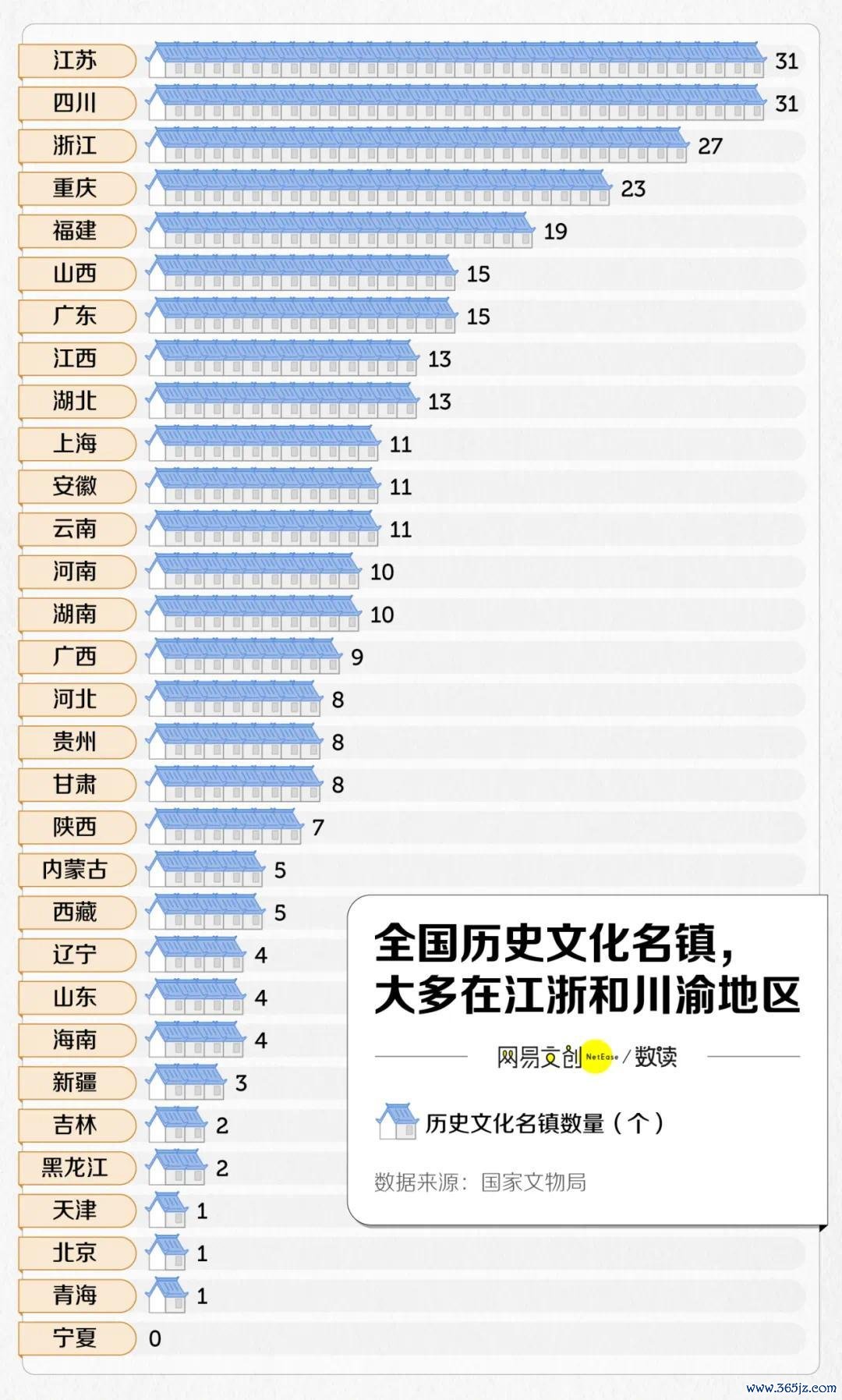 据国度文物局数据知道,寰宇历史文假名镇数目不外 312 家,主要在江浙和川渝地区 [15]。但中国古城与文化研究院院长林鹏测度,中国已设备或正在设备的古城镇一经有 2800 多座 [16]。要知说念寰宇县城的数目王人不到 1500 个,终点于每个县王人标配一个“古镇” 。