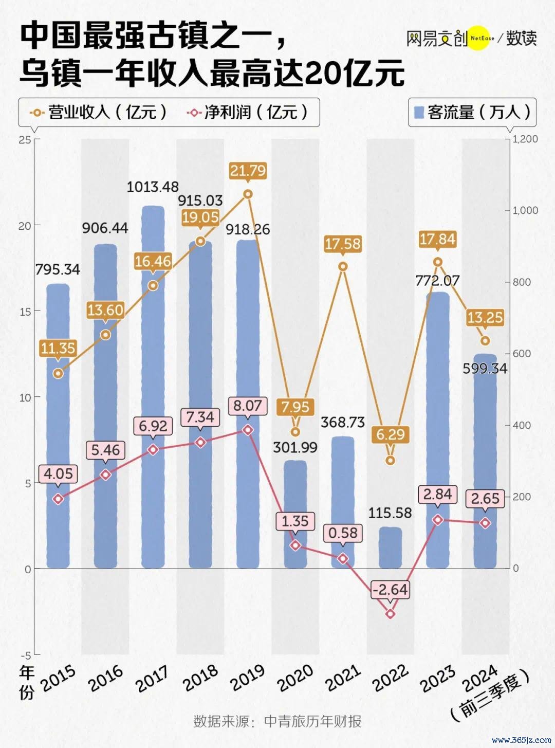 恶果,乌镇的这一改良,令其从一个名不见经传的浮浅小镇成了寰宇乃至世界级的不雅光小镇。2016 年到 2019 年,乌镇每年的客流量王人基本达到千万量级,最赢利的时辰,一年营收高达 21.79 亿元,净利 8.07 亿元 [13]。