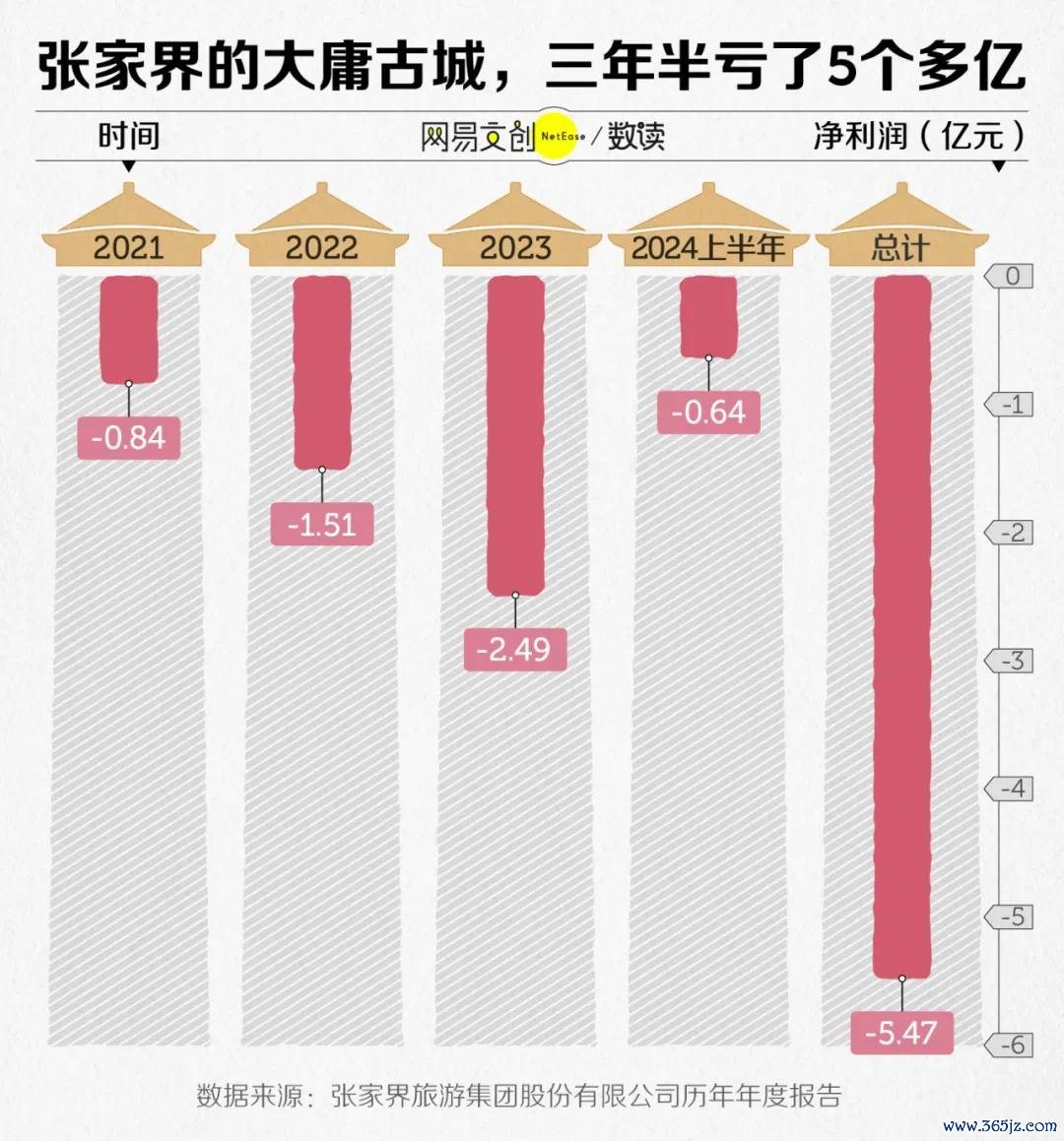恶果东说念主算不如天算,2021 年运转试运营后,大庸古城近年逝世,三年半以来一经亏了 5.47 亿元。