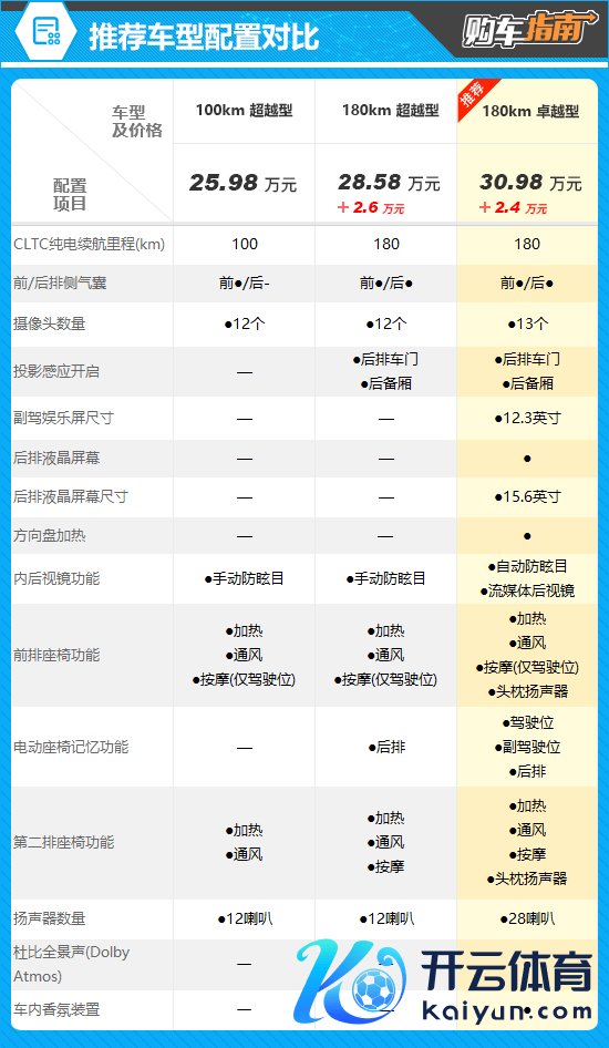 本次保举的是售价30.98万元的180km超卓型,通过建树对比不错看出,保举车型比较低一级别车型在欢悦性及多媒体建树方面有所补助,新增12.3英寸副驾文娱屏、后排液晶屏幕、标的盘加热、第二排座椅头枕扬声器等。同期,对MPV车型来说,第二排乘客体验更为首要,保举车型还配备了15.6英寸的后排液晶屏幕,行车时也会提供更丰富的文娱体验。此外,扬声器数目也由12个喇叭升级为28喇叭,天然价钱加多2.4万元,但新增建树完全天值地值,能带来更好的用车体验。