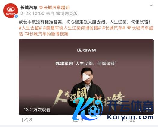 魏建军以长者和导师的身份传话"东谈主生明朗,何惧试错"。这不仅是一句标语,更是品牌对年青群体价值选拔的极大尊重。出奇千万次的播放量阐明:果真的情谊共振,其传播爆发力远胜任何硬广。