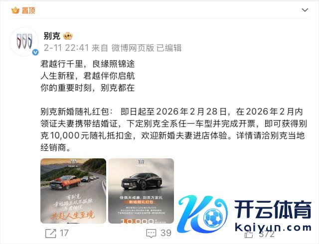 面对这一热门事件,别克玩忽选拔为新东谈主站台,第一时候相干新东谈主,奉上万元红包和一句"少小有为娶李婷,别克君越载爱情"。这种对浮浅东谈主幸福的督察,化解了集聚审丑带来的不安。