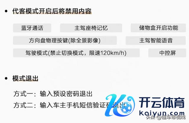 在一键开启代客模式下,将放胆多媒体使用和部分车控功能,保护个东说念主秘密信息。