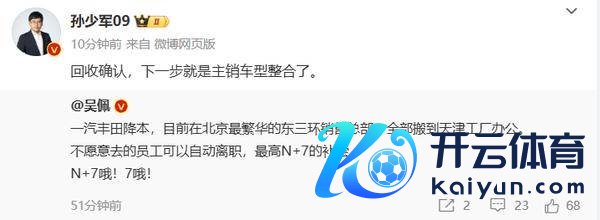 更令东谈主瞩筹划是,一汽丰田已作出决策,将其位于北京东三环中枢区域的销售总部举座迁徙至天津工场。对于不肯随迁的职工,公司提供了自动下野的选项,并给出了最高可达N+7的赔偿有筹商。事实上,这一搬迁蓄意早在旧年年底就已初露条理,而对于销售总部迁址天津的传奇更是由来已久。历程数月的疏导与动员,旧年11月,这一决策最终得以细目。尽管北京至天津的高铁仅需半小时,但对于需要磋商社保、家庭等成分的职工而言,这一变动已经导致部分东谈主员遴荐了经受下野赔偿。
