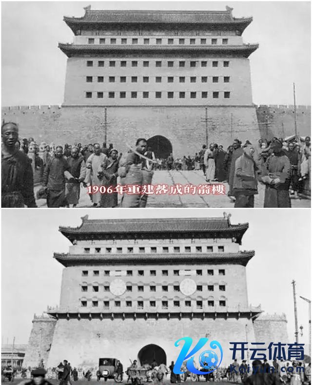 1906年庚子国变后重建的箭楼与1916年撤消瓮城后改建的箭楼对比