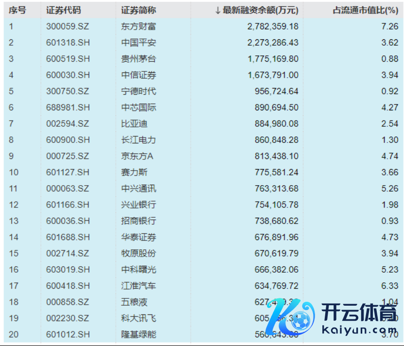 其中,融资余额最高的前十大个股包括:东方钞票、中国祥瑞、贵州茅台、中信证券(维权)、宁德期间、中芯海外、比亚迪、长江电力、京东方A、赛里斯等。