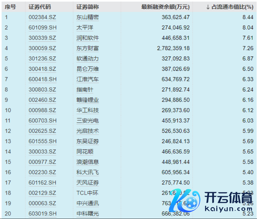 从两融资金的偏好来看,融资最积存的行业是电子、非银金融、盘算推算机、电力开辟、生物医药、机械开辟等,当今融资占通顺市值比例最高的个股包括东山精密、太平洋、润和软件、东方钞票、软通能源、昆仑万维(维权)、江淮汽车、指南针、赣锋锂业、华工科技等。
