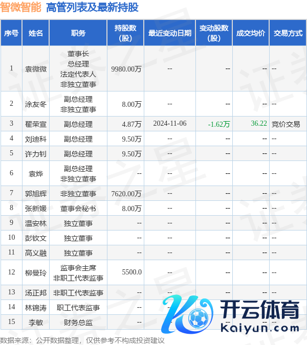 智微智能近半年内的董监高及中枢时间东说念主员增减握细则如下: