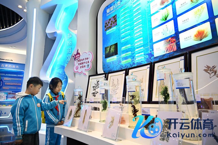 两名小学生在明月海藻集团海藻科技馆内参不雅(11月14日摄)。新华社记者 李紫恒 摄