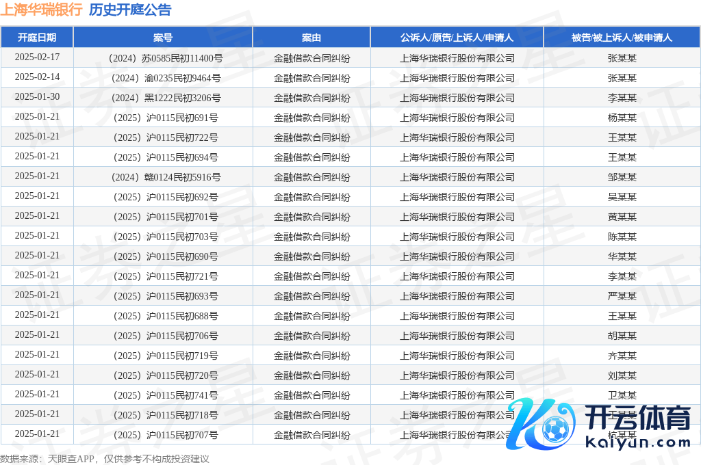 本站音书开云体育,说明天眼查APP露馅,近日公布了一则上海华瑞银行股份有限公司行为原告/上诉东谈主的开庭公告,详备践诺如下: