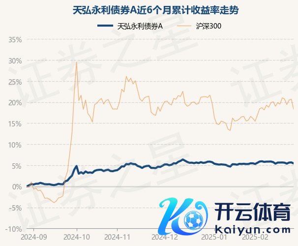 本站音尘,2月28日,天弘永利债券A最新单元净值为1.2199元,累计净值为1.9634元,较前一往未来着落0.22%。历史数据知晓该基金近1个月着落0.02%开云体育,近3个月飞腾0.81%,近6个月飞腾5.45%,近1年飞腾5.22%。该基金近6个月的累计收益率走势如下图: