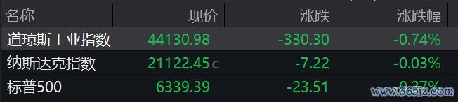 当地时候周四,好意思股三大指数集体收跌,谈指跌0.74%,纳指跌0.03%,标普500指数跌0.37%。
