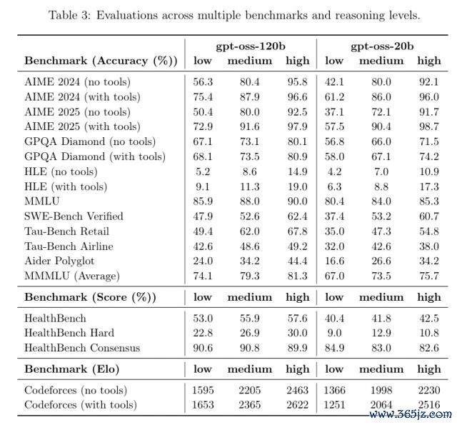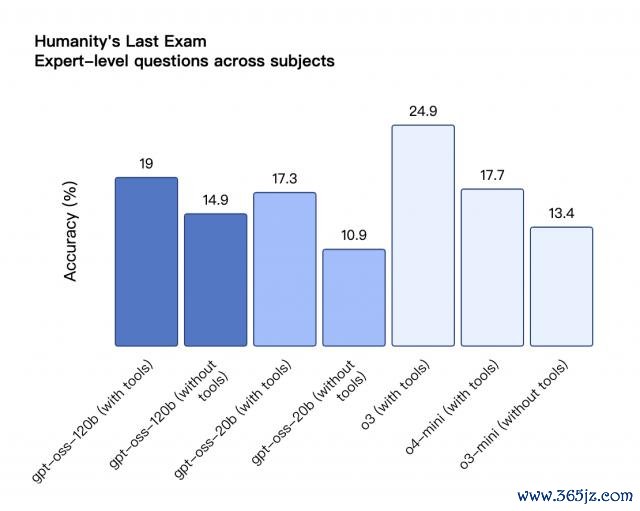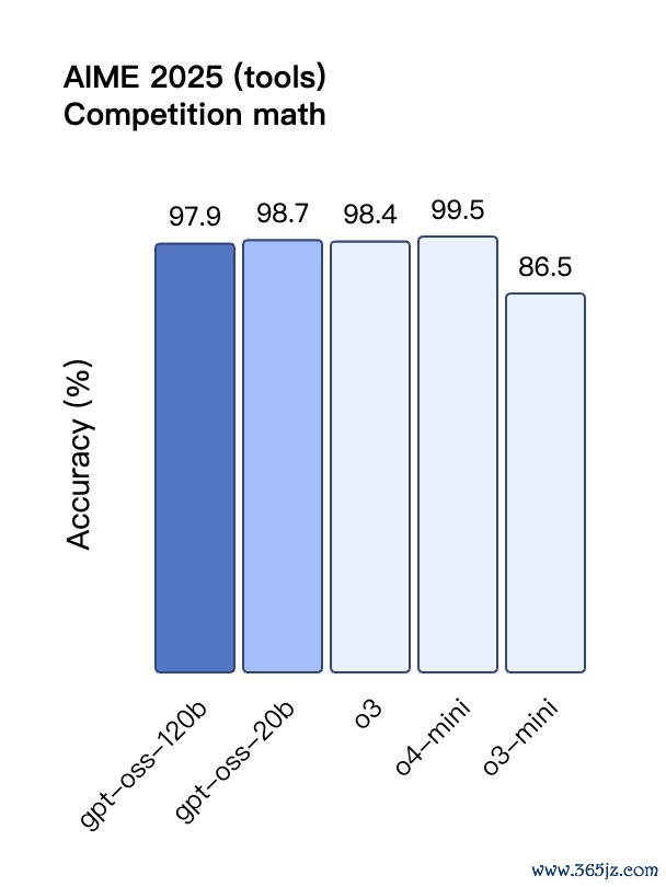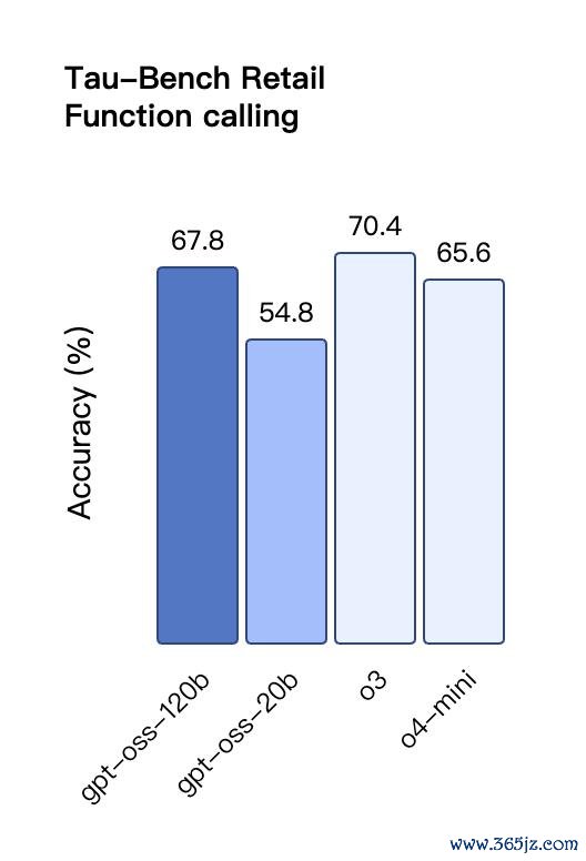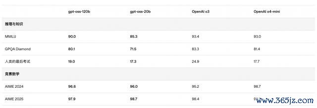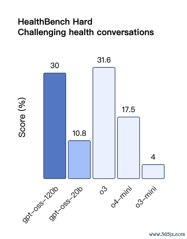 在器具调用的 TauBench 评测中,gpt-oss-120b 相似进展优异,以致越过了像 o1 和 GPT-4o 这么的闭源模子;在健康接洽查询的 HealthBench 测试和竞赛数学的 AIME 2024 及 2025 测试中,gpt-oss-120b 的进展以致突出了 o4-mini。