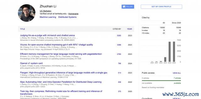 学术方面,凭据 Google Scholar 的数据,Zhuohan Li 的学术论文援用量已越过 15000 次,h-index 达到 18。他的代表性论文如 MT-Bench 与 Chatbot Arena、Vicuna、vLLM 等均得回数千次援用,在学术界产生了平庸影响。