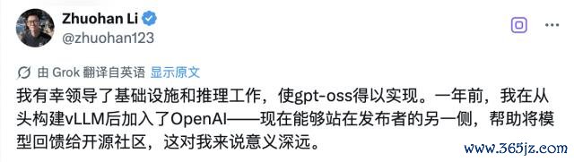 在这次历史性的开源发布背后,有一位期间东说念主员值得稀奇转机——引导 gpt-oss 系列模子基础设施和推理责任的 Zhuohan Li。