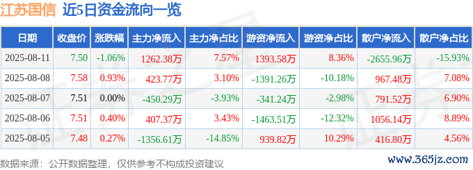 本站音问开yun体育网,甘休2025年8月11日收盘,江苏国信(002608)报收于7.5元,下落1.06%,换手率0.59%,成交量22.24万手,成交额1.67亿元。