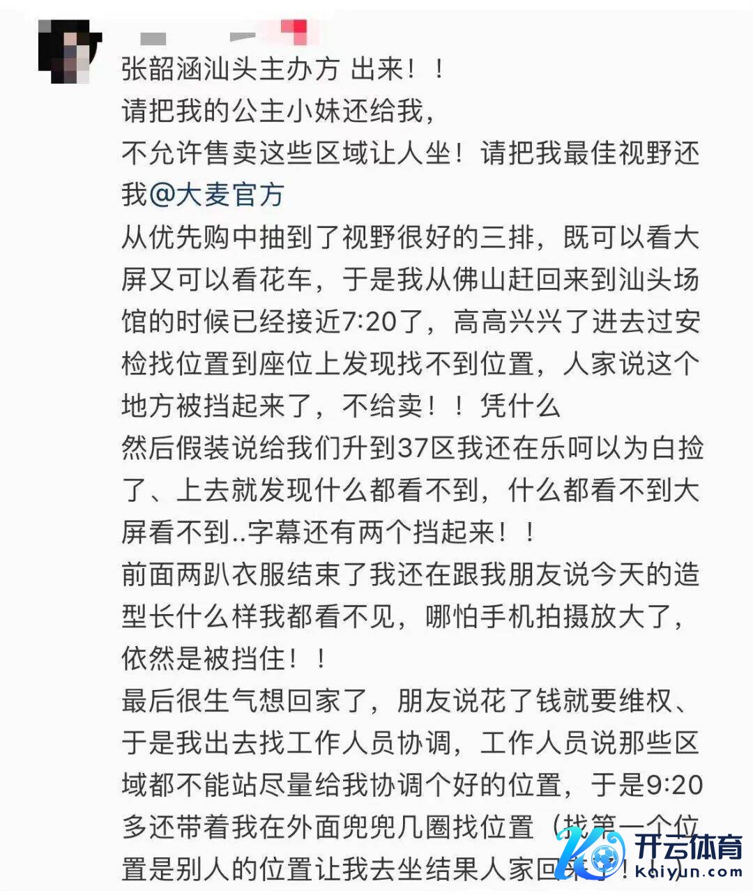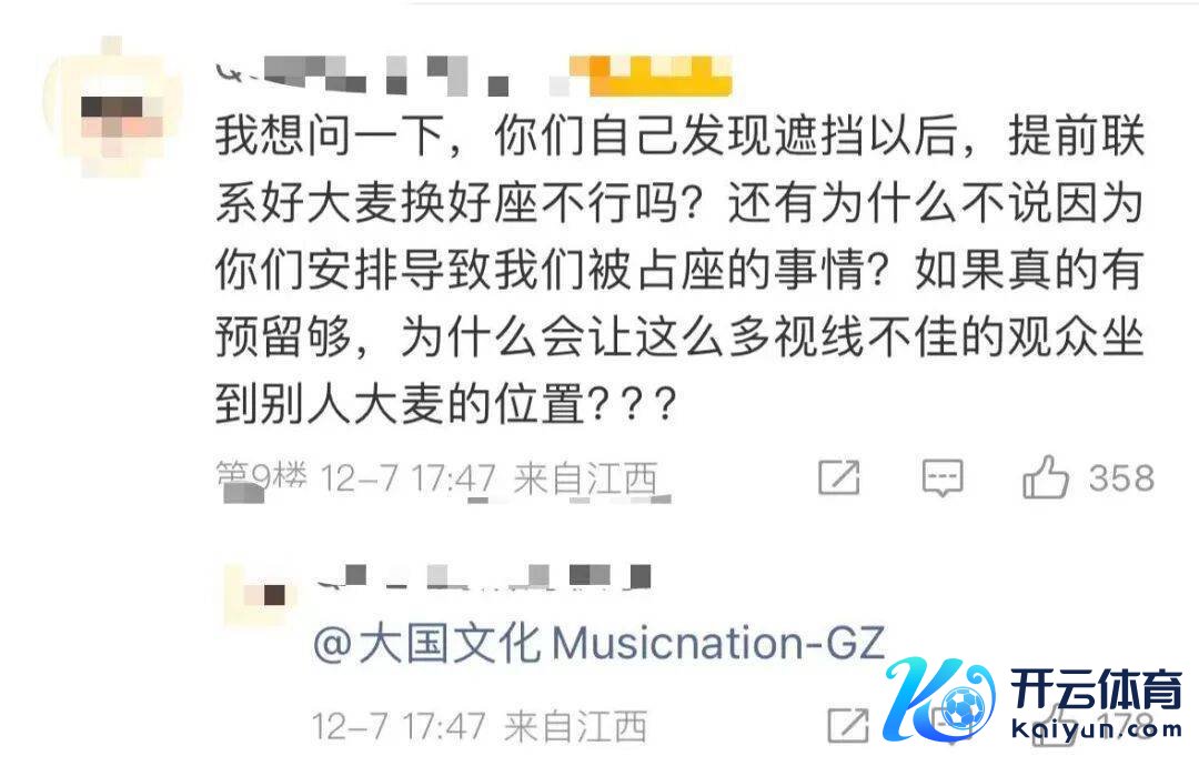 网友称,“我费钱买的演唱会,为什么到了现场莫得座位给我”“主理方发现位置视野欠安后,为什么不成提前相关大麦调治位置”。