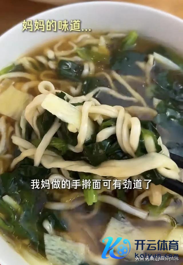 姆妈用猪油煮的手擀面,配上刚摘的清新菜叶,朱丹吃得直呼过瘾。