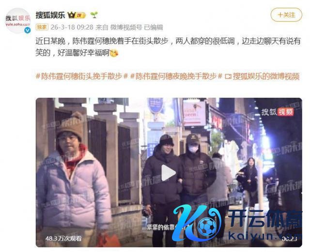 据 3 月 18 日报说念开云体育(中国)官方网站,近日,一组陈伟霆与何穗夜深挽手溜达街头的视频,霎时烽火了酬酢网罗。这是两东说念主自客岁 10 月官宣生子近五个月后,初度被拍到的公开同框,一颦一笑王人散漫着"老汉老妻"般的当然糖分,让围不雅网友直呼:"这种低调的甜密,比偶像剧还上面!"