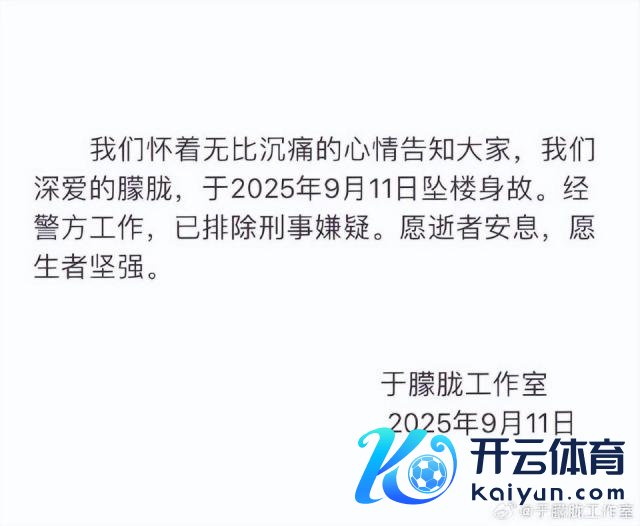 咱们怀着无比千里痛的情怀见告专家,咱们喜欢的详尽,于 2025 年 9 月 11 日坠楼身死。经警方责任,已摈斥刑事嫌疑。愿尸骸安息,愿生者阻滞。