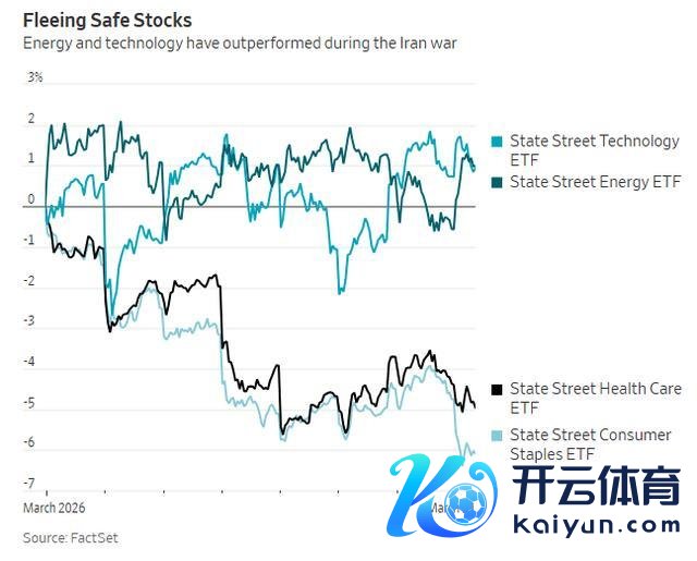 中东突破爆发以来,好意思股能源股定期上升,科技和软件股微跌不到1%;而传统的避险天国——医疗保健ETF却下落约5%,必选破钞ETF下落约6%。