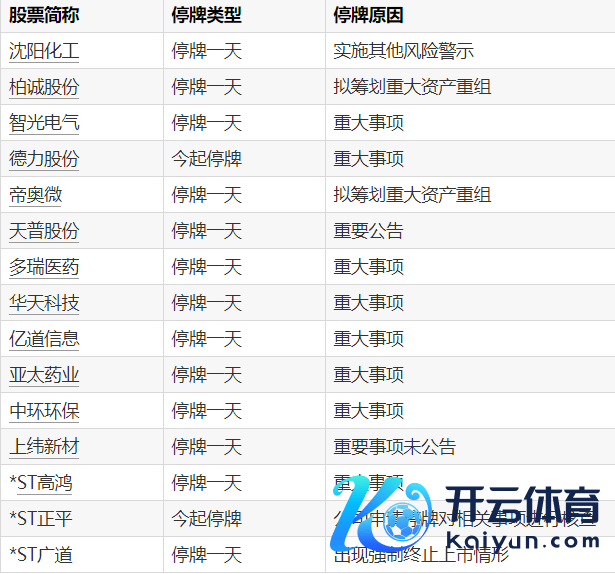 A股停牌教唆:15股当天停牌A股停牌教唆:15股当天停牌